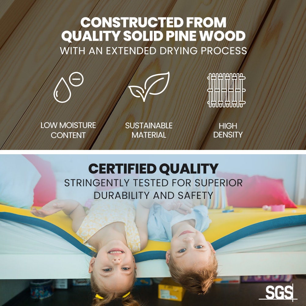 KINGSTON SLUMBER Single Bunk Bed Frame, Solid Pine 2-in-1 Modular Design, Converts to 2 Single Beds For Kids, White