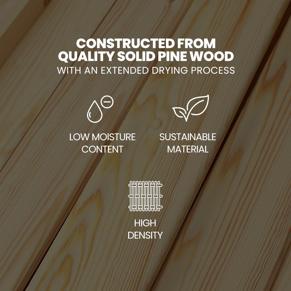 Crafted with solid pine with premium quality slats, it offers an impressive 120kg capacity, ensuring durability and stability. The extended drying process of the frame guarantees long-lasting quality. This Kingston Slumber bed single size frame is eco-friendly, 100% formaldehyde-free and features non-toxic paint.