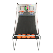 This Arcade Basketball Game is a perfect game for the entire family. It's designed for one or two players and allows you to choose from eight different game play options. The frame is constructed of sturdy 7/8-inch diameter metal with durable 12-inch diameter steel rims and braces to provide stability during active play. The LED scoring system keeps track of score and time and also has integrated arcade sound effects for an authentic stadium experience. After playing, it can be folded quickly and easily for storage. All accessories are included.