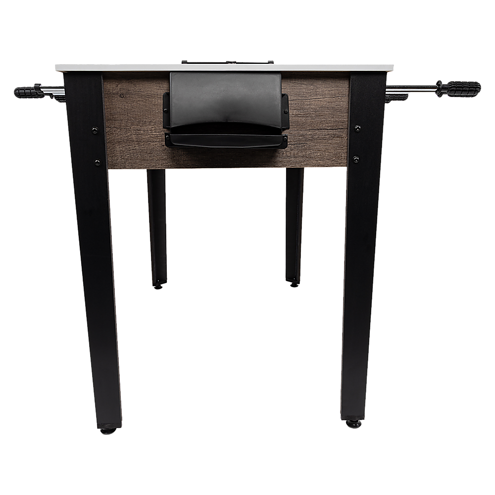 Elevate your foosball experience with this gaming table from Randy Travis Machinery, a perfect addition to your home or office recreation. Crafted from durable solid wood and featuring steel rods finished in gleaming chrome, this table is designed for lasting enjoyment, even with daily use. Kickstart the game effortlessly with ball serve cups on each side. Ideal for family fun, it's a great fit for your rumpus room and makes an excellent gift for foosball enthusiasts of all ages.