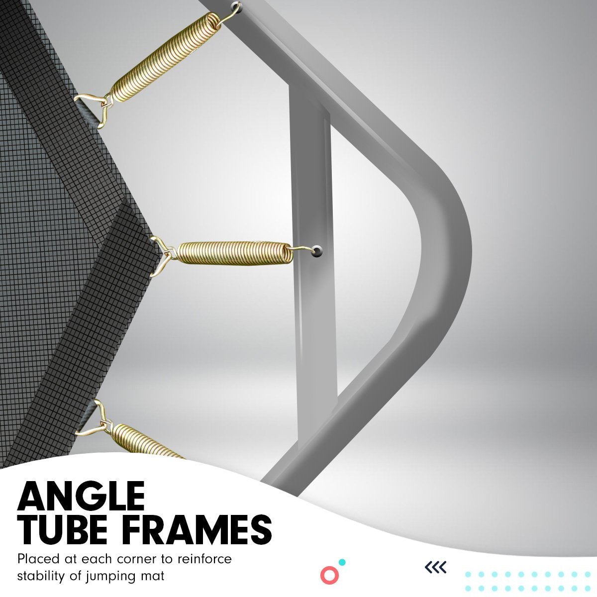 This trampoline features a spacious rectangular sized jumping surface and U-shaped linked legs for optimal support. Great for safe, family fun our trampolines are a great way to get kids off those electronic devices and outside to burn off some of that energy.