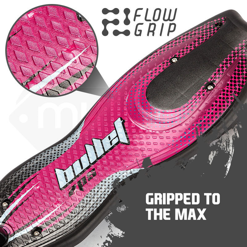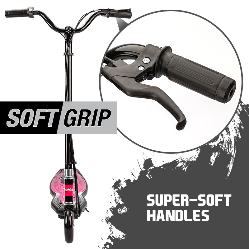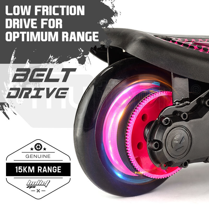 The Bullet ZPS electric scooter boasts striking pink decals on the FlowGripTM deck which offers plenty of control for safe riding. Thanks to the 140 watt motor it can zip along at speeds of up to 15km/h, which is fast enough for maximum fun, without causing chaos in the local park.