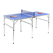 Weighing only 9kg, it's easy to carry from one room to another. You can even take it outside for family fun in the sun. Take it along with you on holiday to keep the kids busy as you plan your next adventure. Serious table tennis aficionados will enjoy its regulation height. Although it's only 5/9 the length of a regulation table, it provides just as much fun and exercise as a full-sized table, especially in small spaces. Don't let a small space hold you back from fun. Order your ping-pong set today!